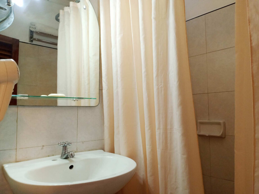 Esta acogedora habitación está equipada con una cama matrimonial y una cama individual, minibar, aire acondicionado split, ventilador, TV y baño privado con agua fría y caliente. Todo pensado para su descanso.