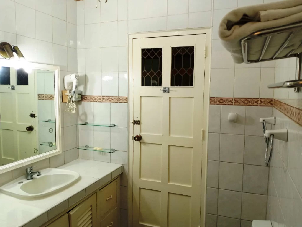 Al igual que nuestra habitación 101, esta espacio cuenta con cama matrimonial y cama individual, minibar, aire acondicionado split, ventilador, TV y baño privado con agua fría y caliente. Todo diseñado para garantizar su descanso y comodidad.